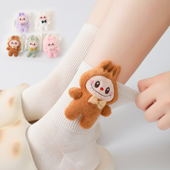 Labubu kadın orta buzağı pamuk çorap sevimli dört mevsim ekip uzunluğu vücut logosu ter emici yetişkin ortalama boyutu her mevsim için